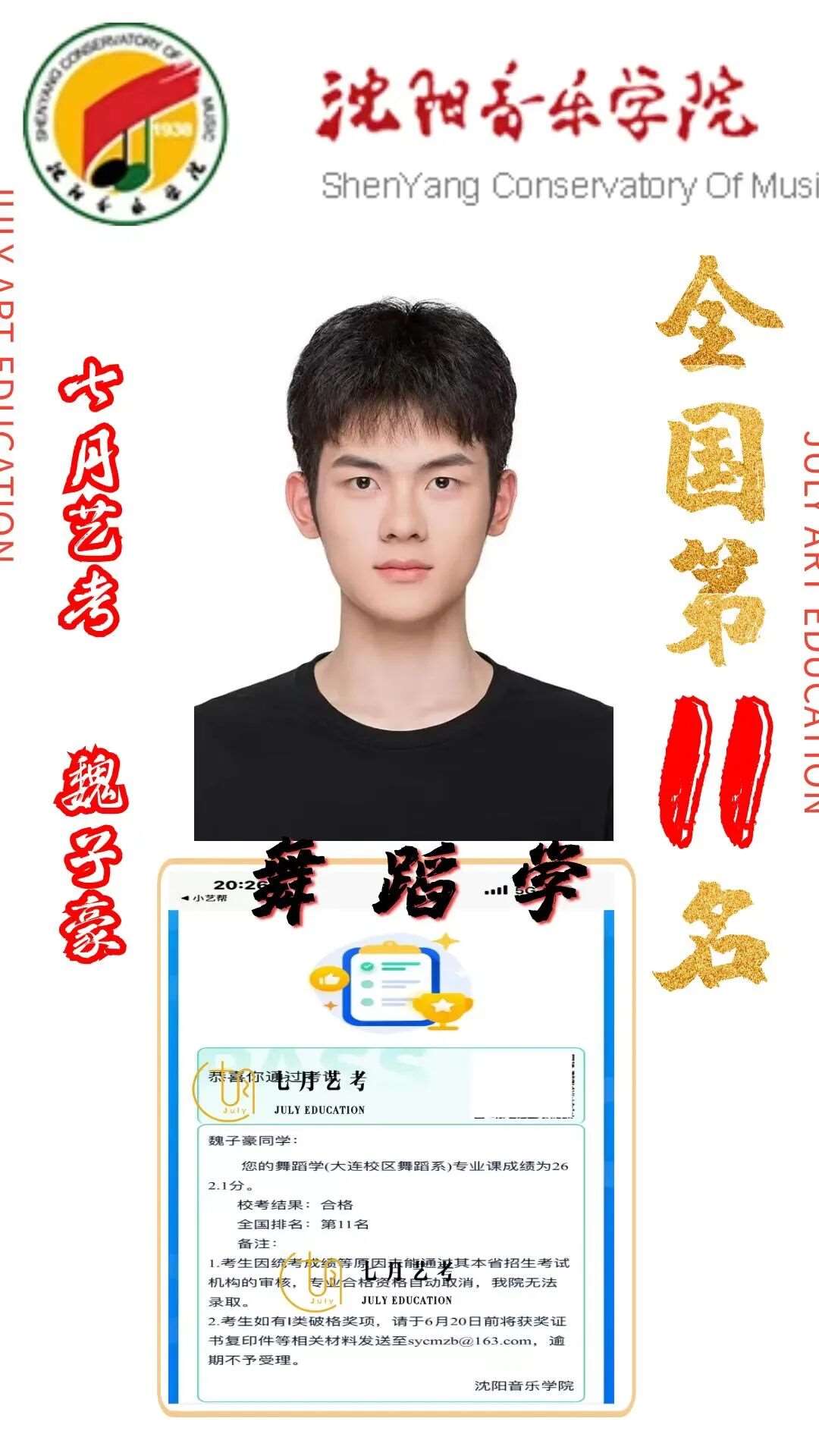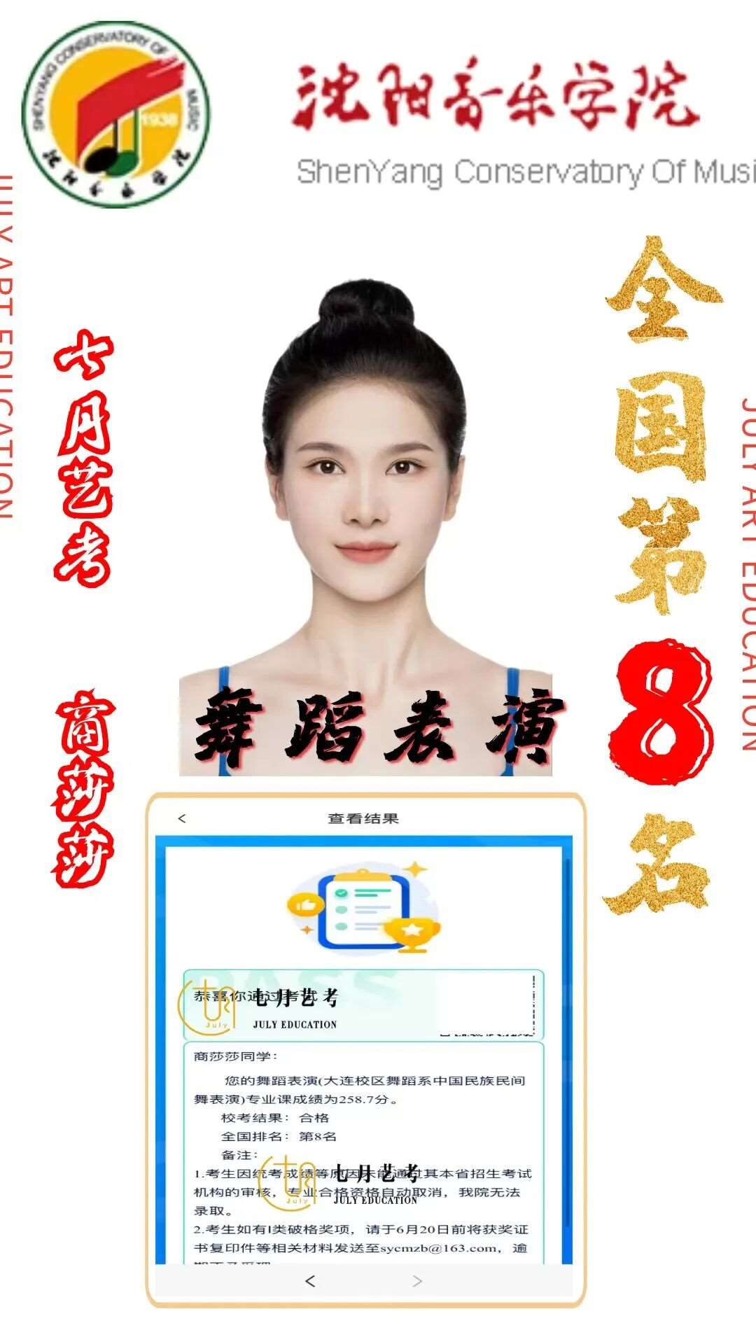 24届孙石轩旖取得沈阳音乐学院舞蹈学全国第*名的好*,