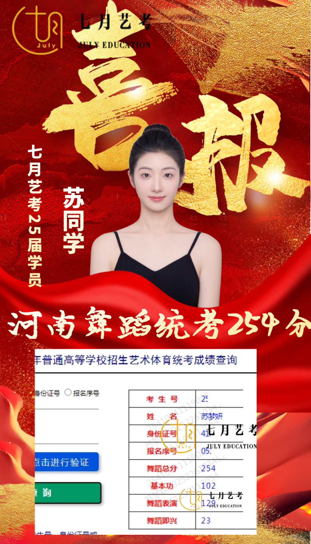 七月艺考专注于舞蹈艺术升学十五年,总部位于北京市海淀区,2018年郑州校区创立起,获得中央民大舞蹈表演全国第*名,全国第二名,舞蹈教育全国第六名,第九名,第十一名,第十二名,第十九名,中戏舞剧全国第三名,河南第*,天音舞表全国第*,沈音舞蹈学全国第*名、沈音舞表全国第四名,全国第九名等。河南省统考始终保持全员过关,本科率达到百分之九十五以上,*一直保持,成为全国学生优选艺考品牌。