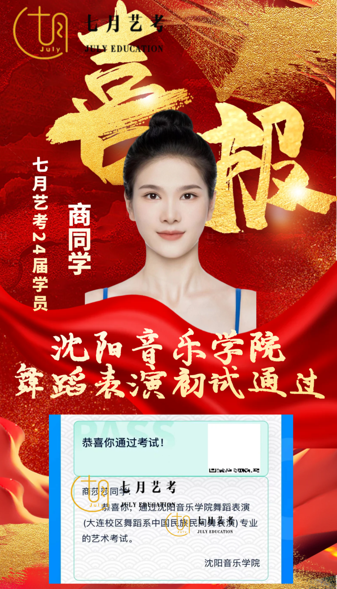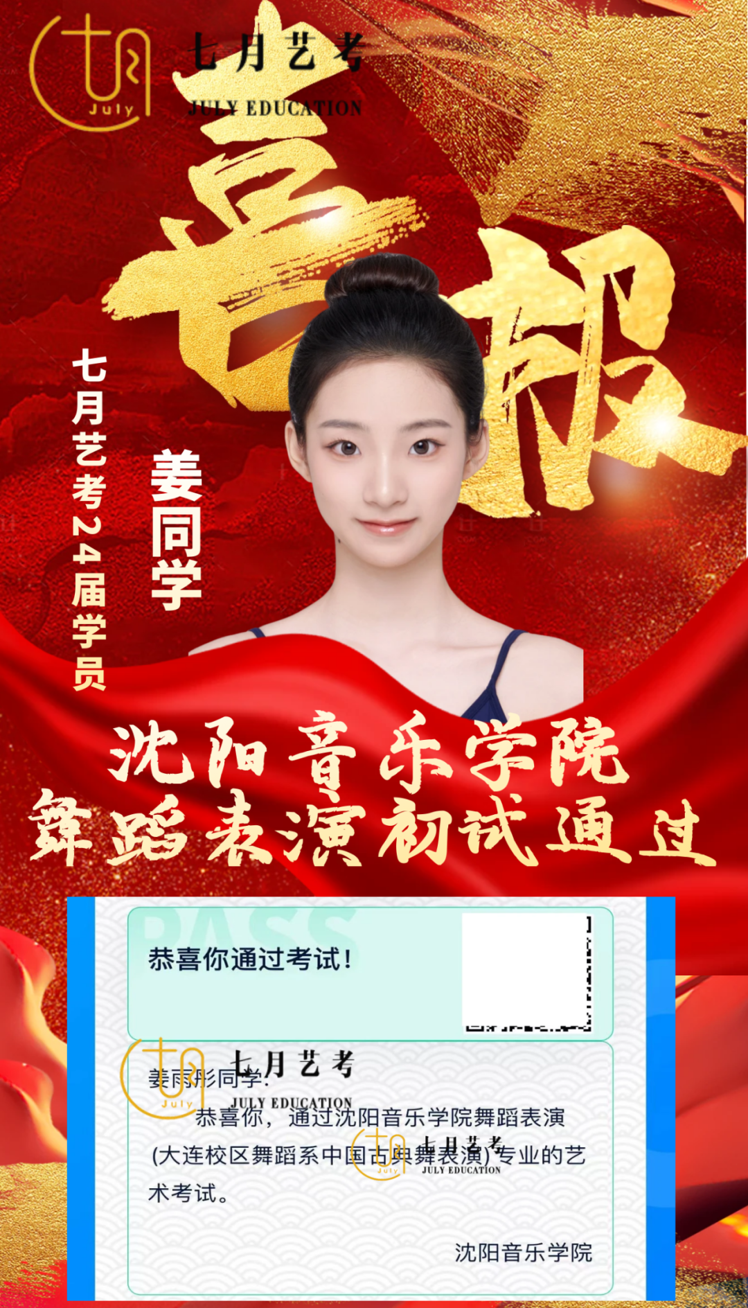 24届孙石轩旖取得沈阳音乐学院舞蹈学全国第*名的好*,