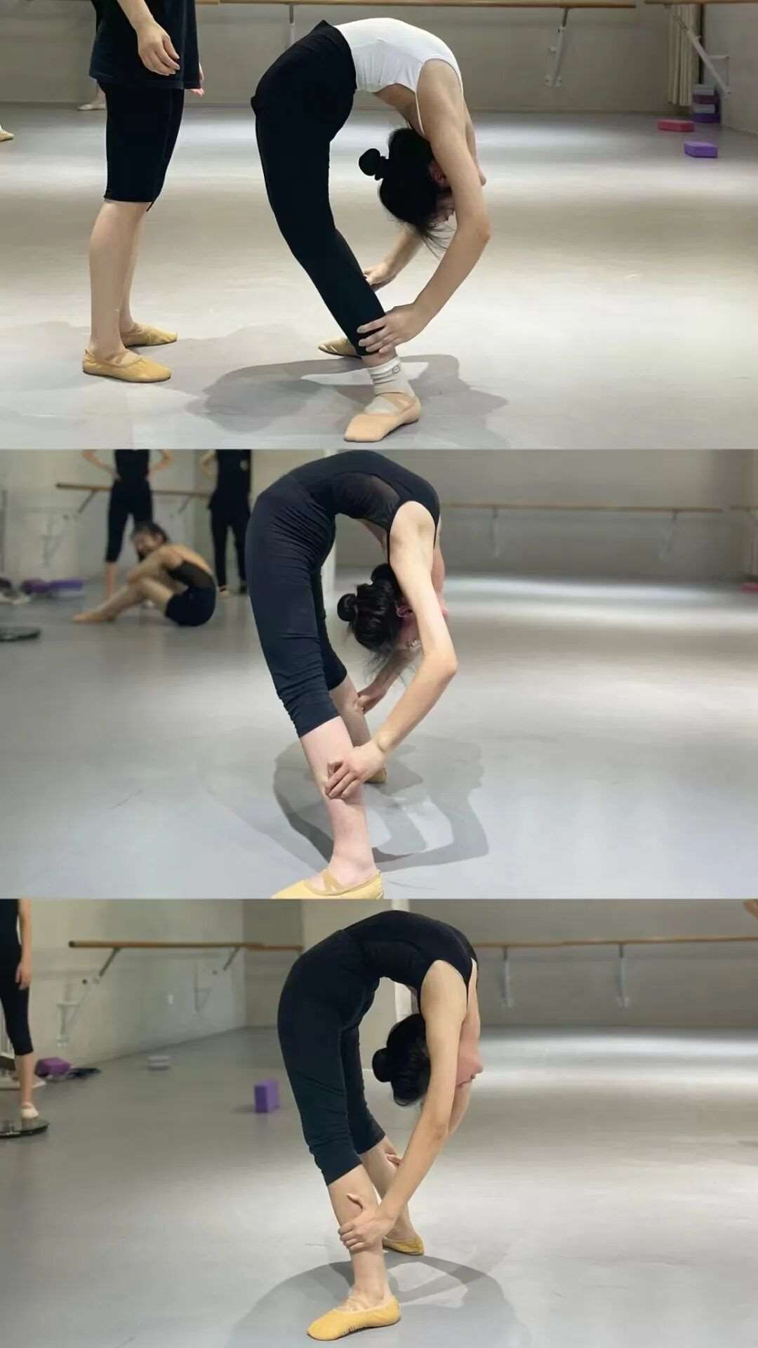 测试身体条件,包括整体外形(全身正面、侧面、背面与上半身正面)和软开度(搬控前旁后腿、下腰)。