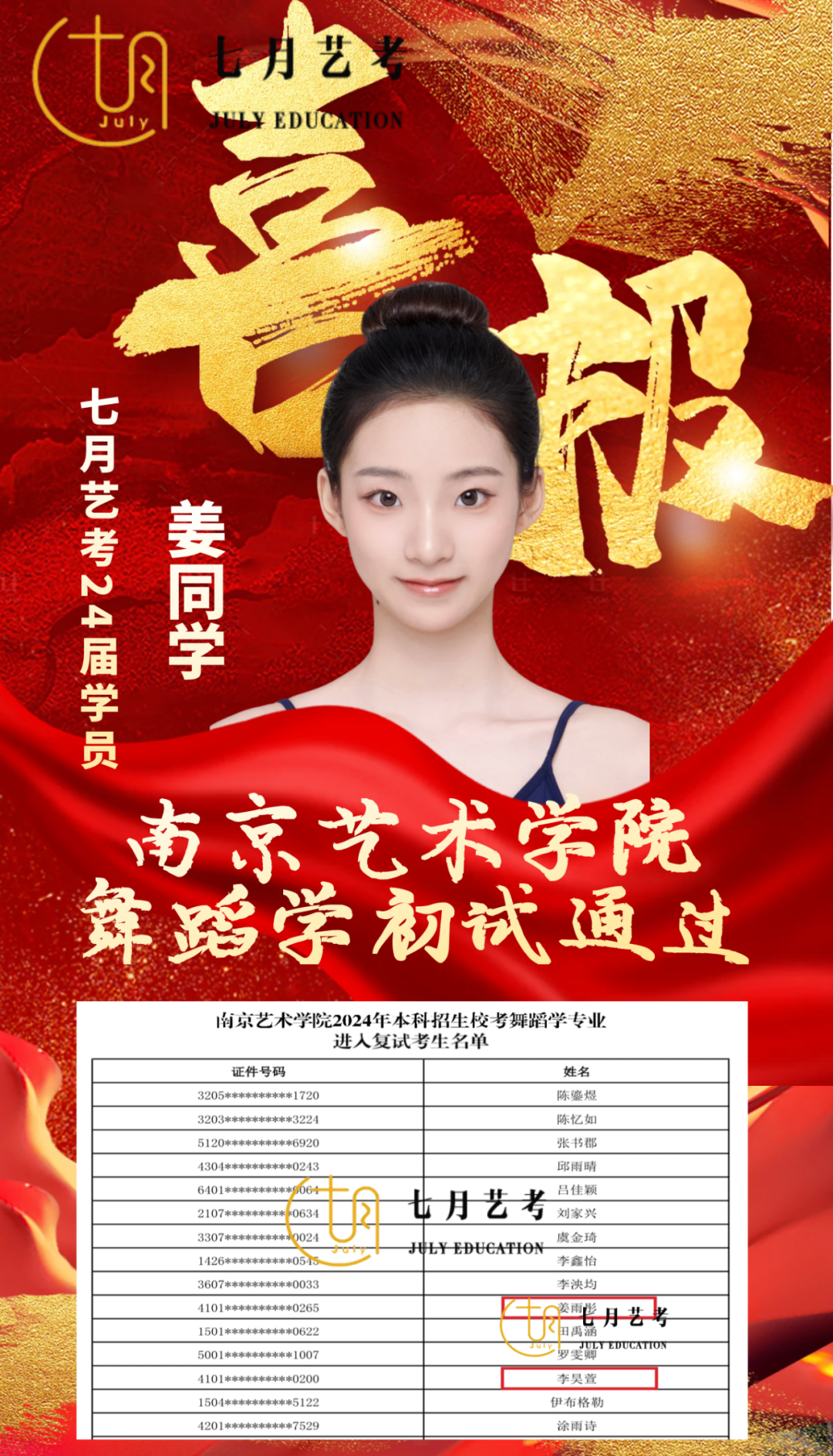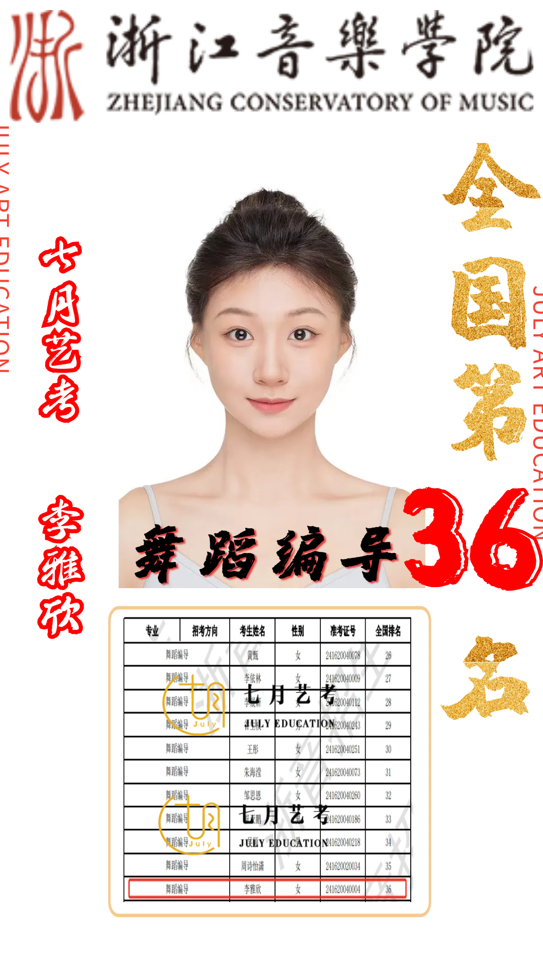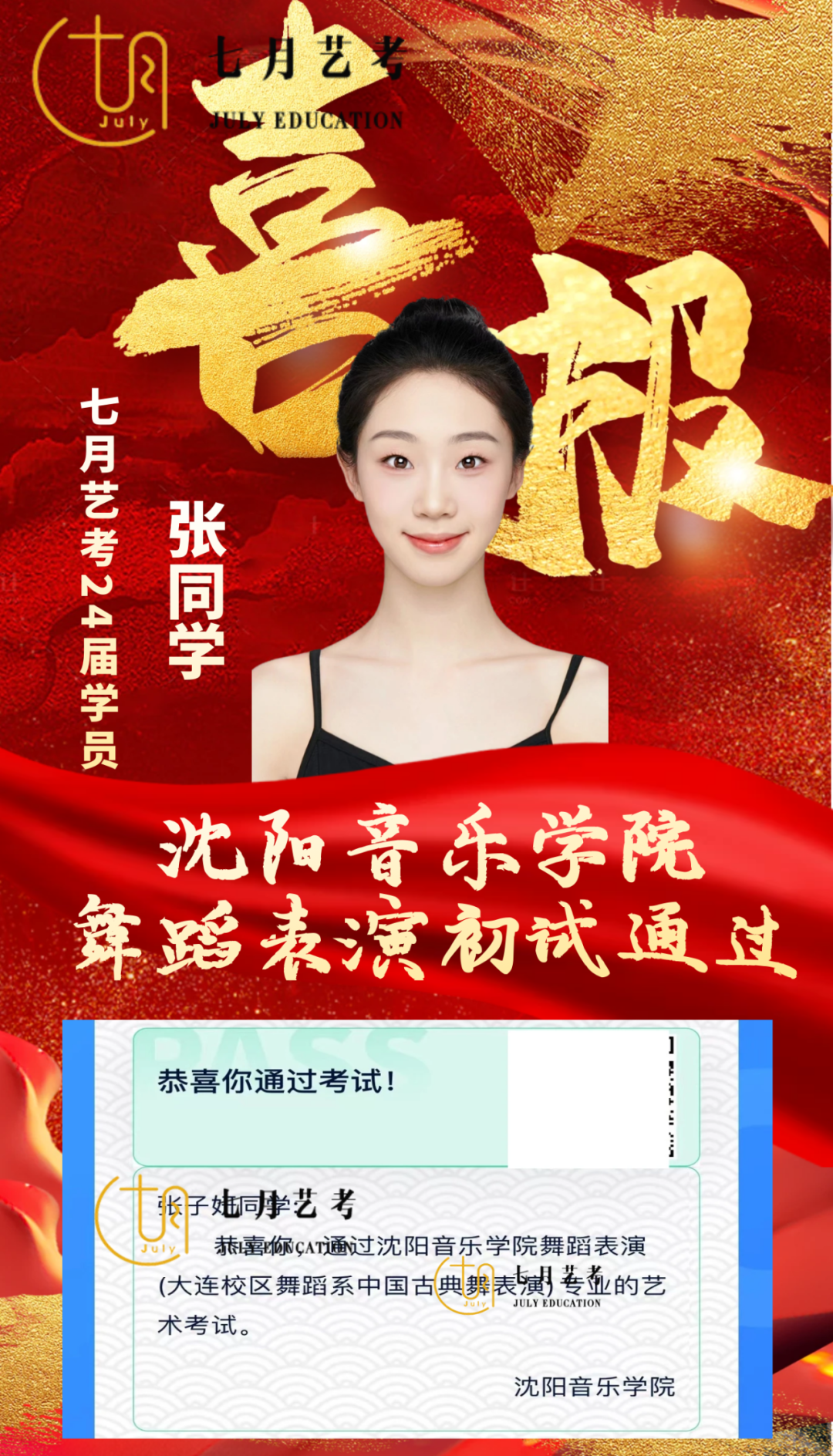 24届孙石轩旖取得沈阳音乐学院舞蹈学全国第*名的好*,
