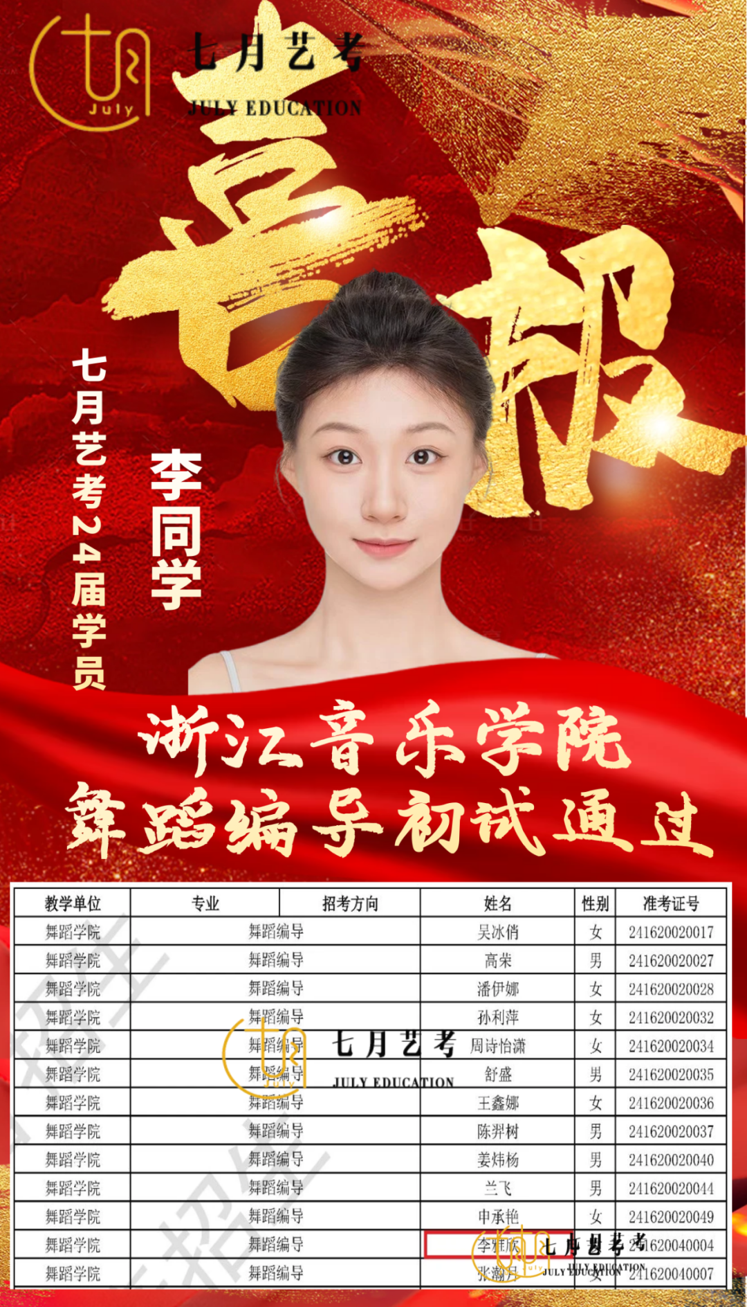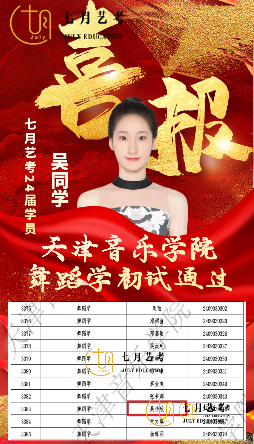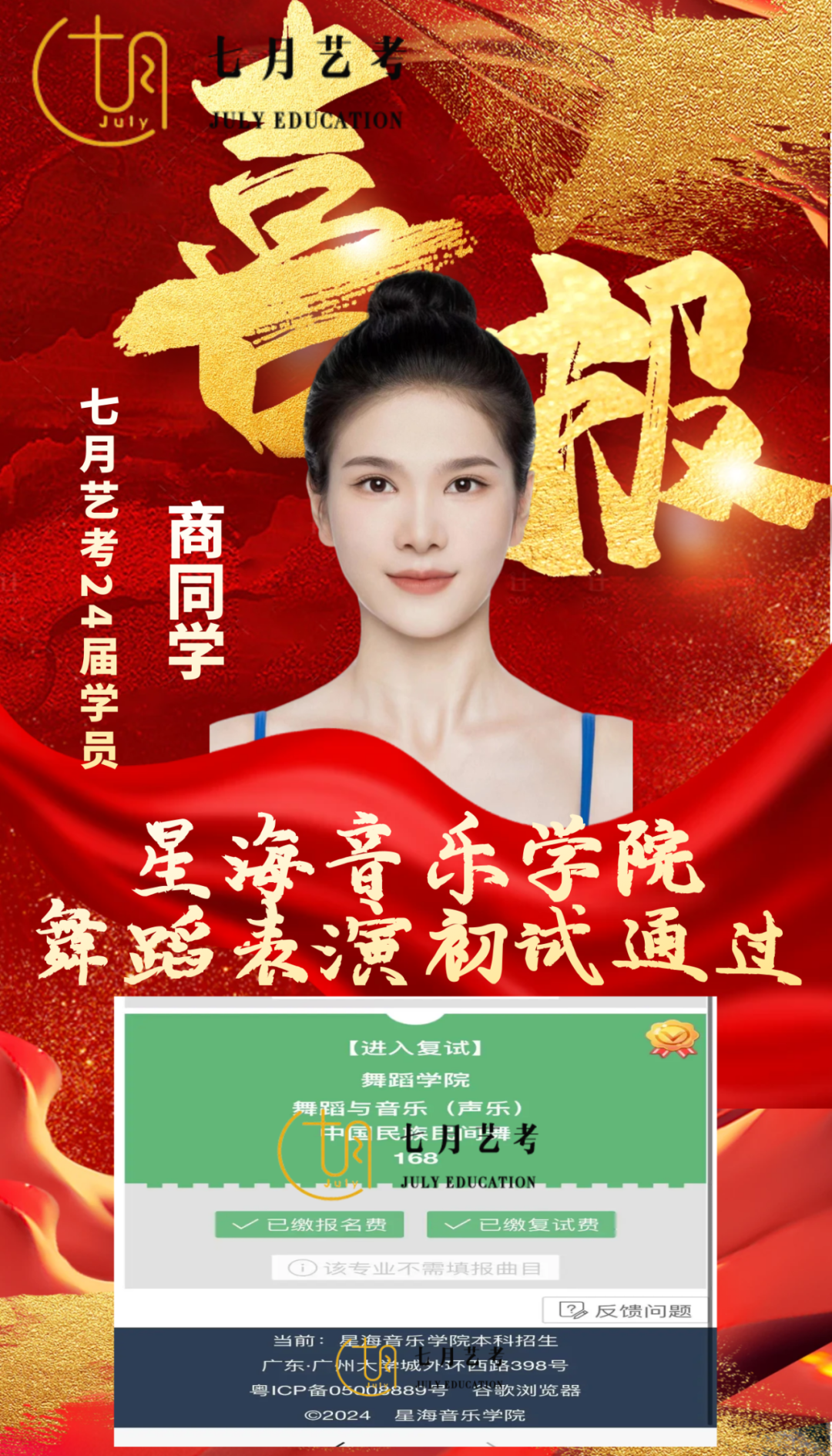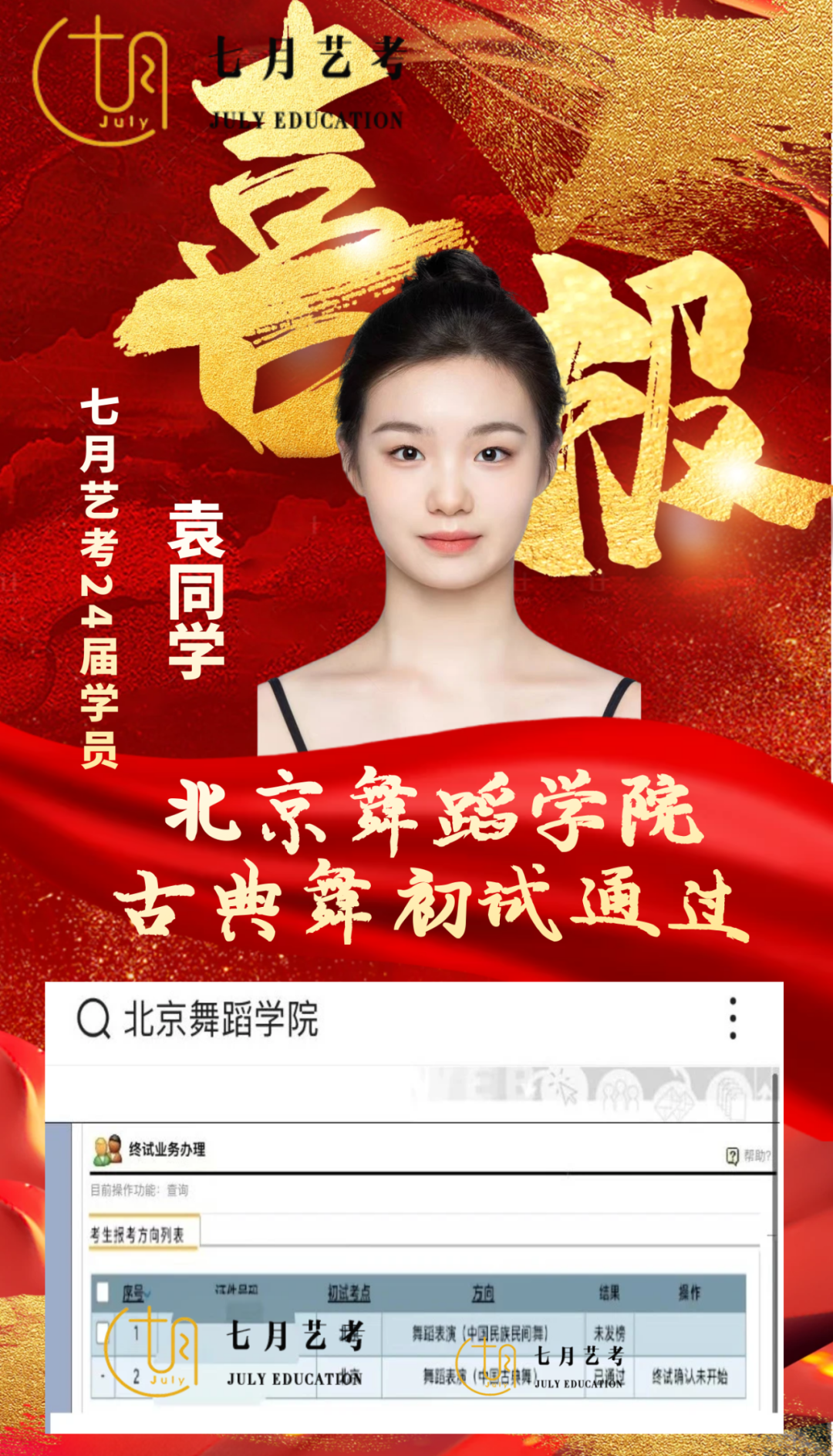 24届孙石轩旖取得沈阳音乐学院舞蹈学全国第*名的好*,