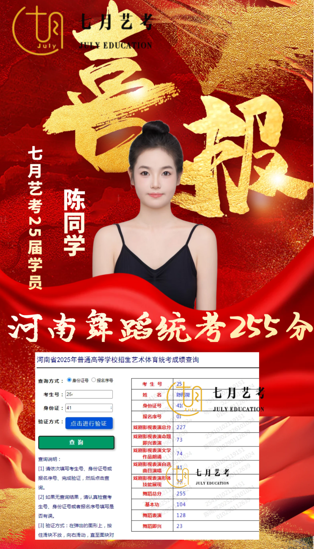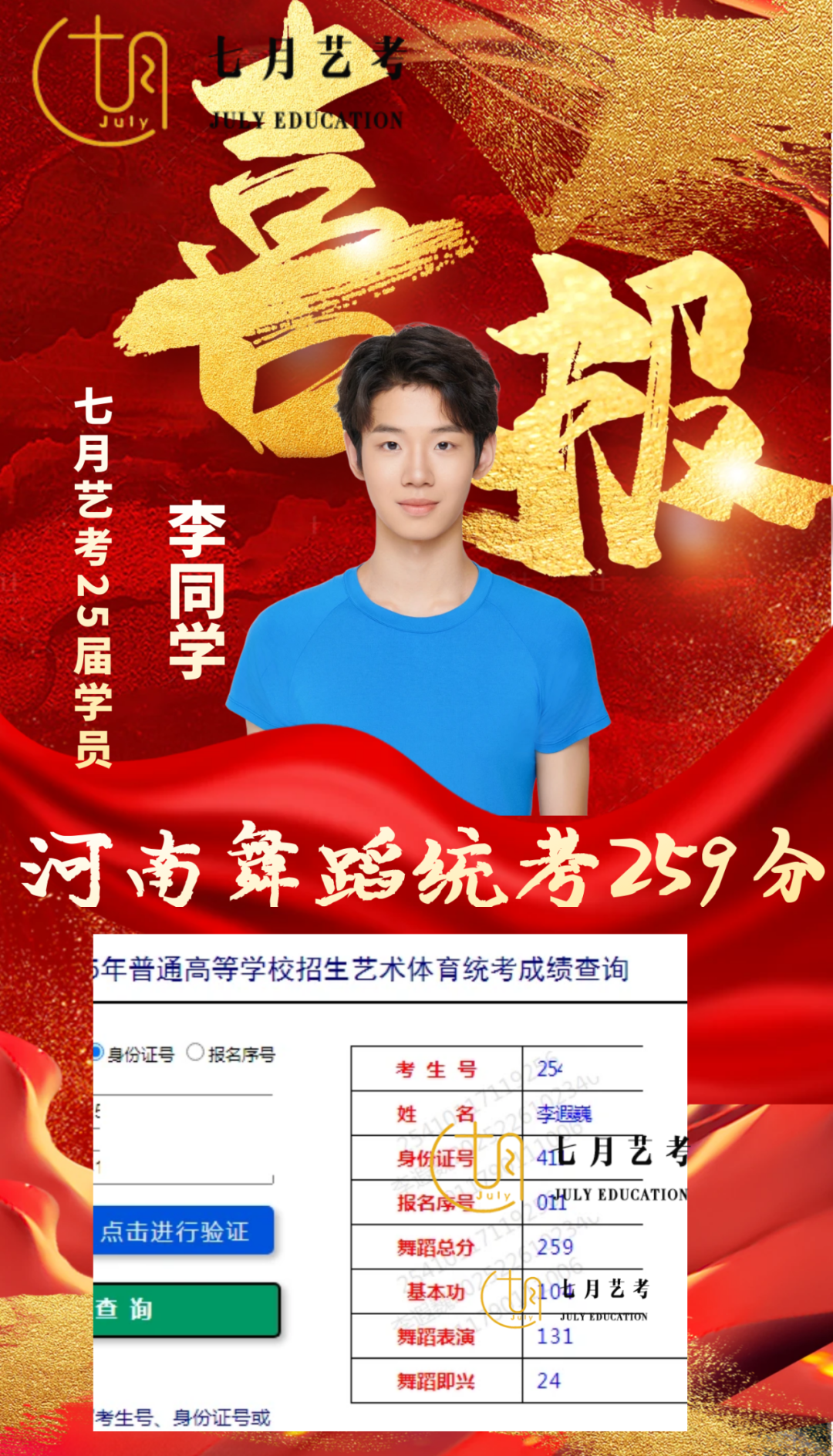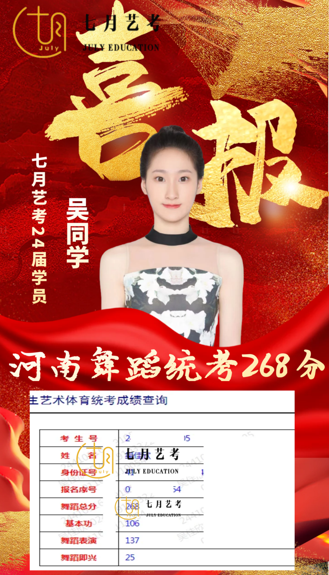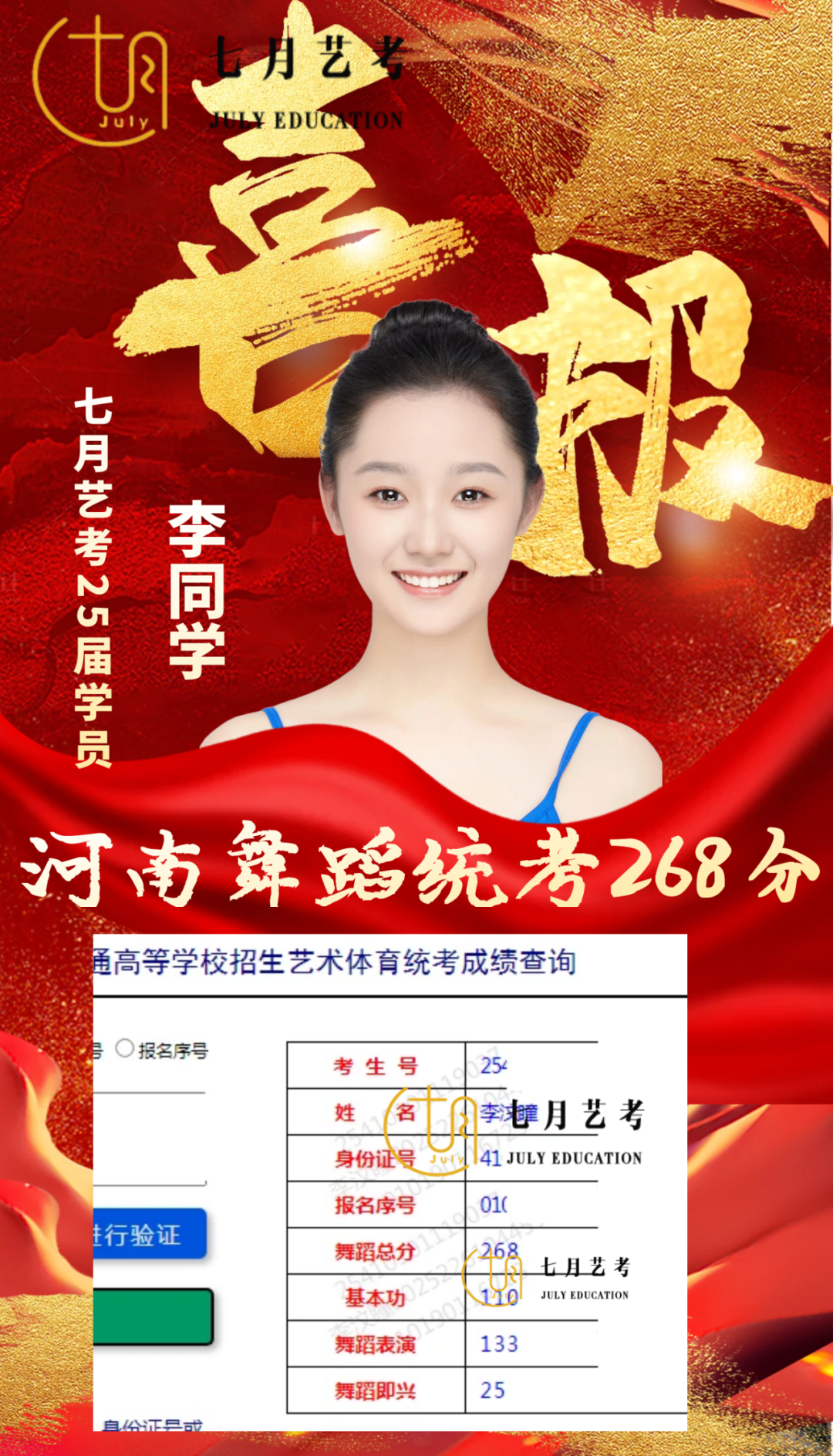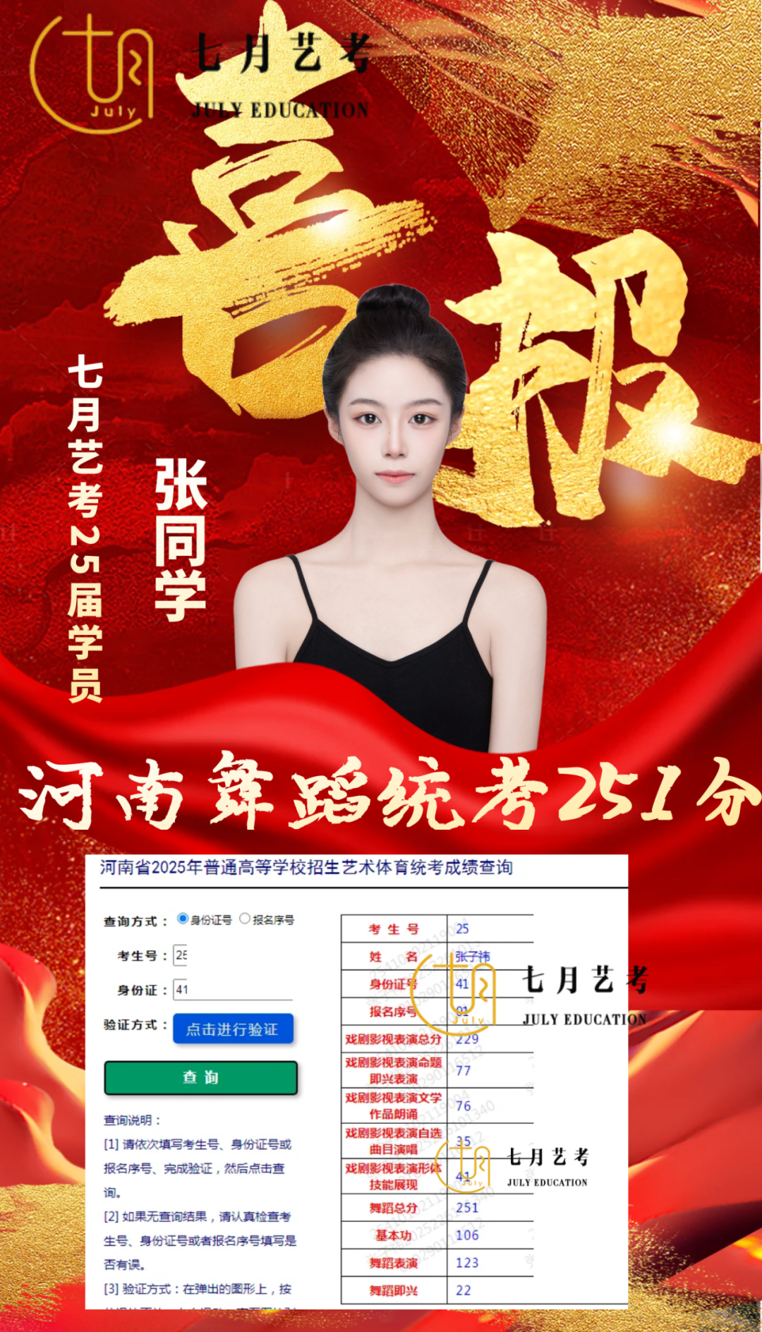 七月艺考专注于舞蹈艺术升学十六年,全国设有北京、云南、郑州三省直营校区,郑州校区连续三年保持普高生民大录取*。