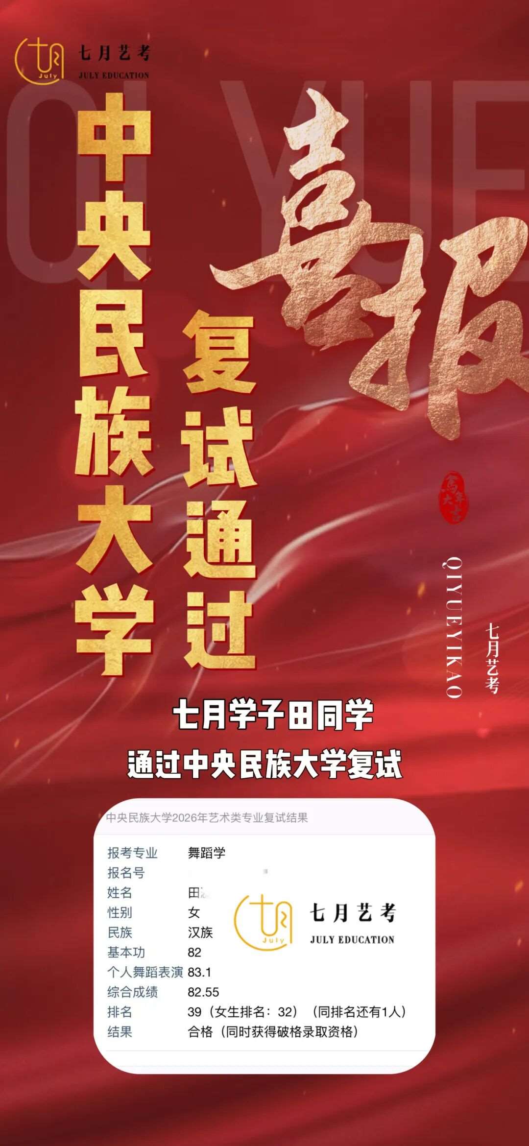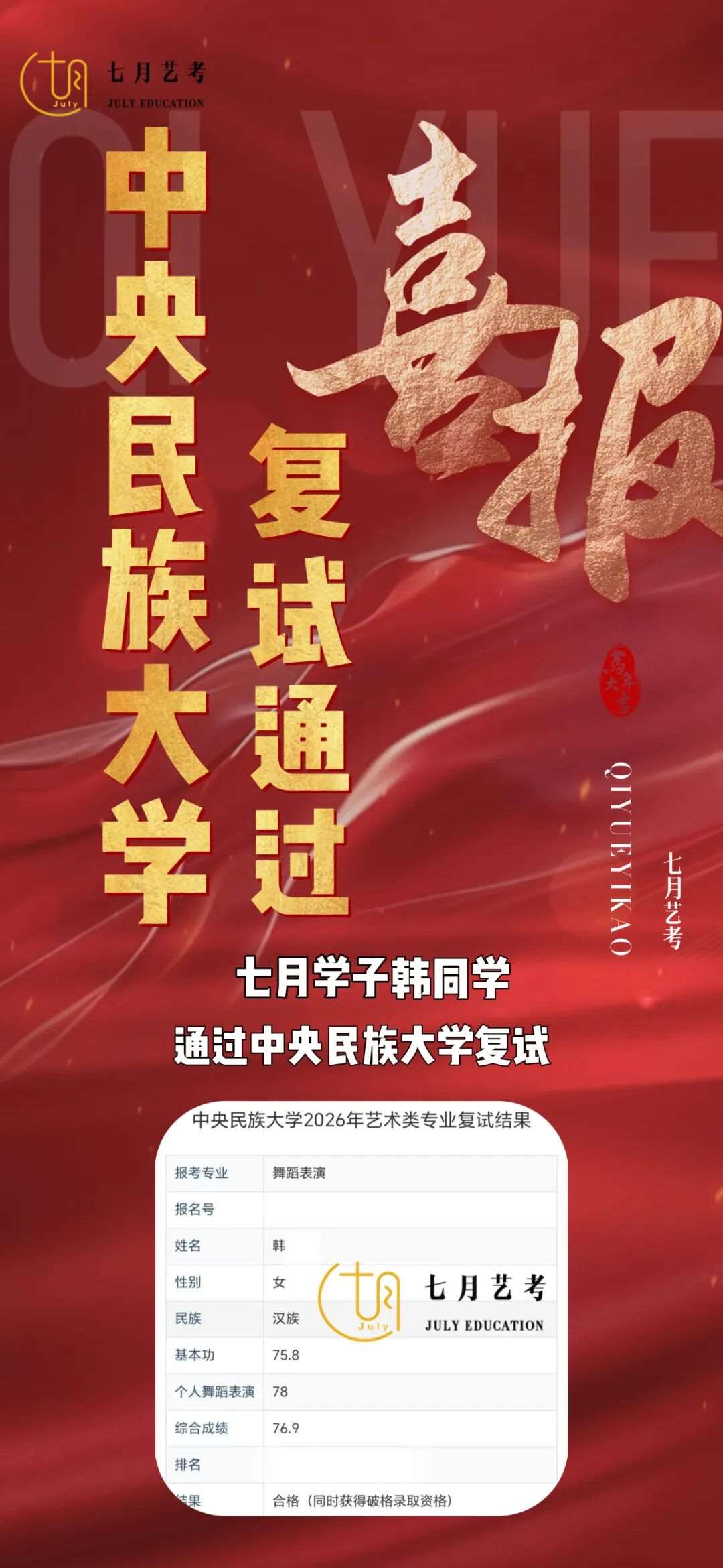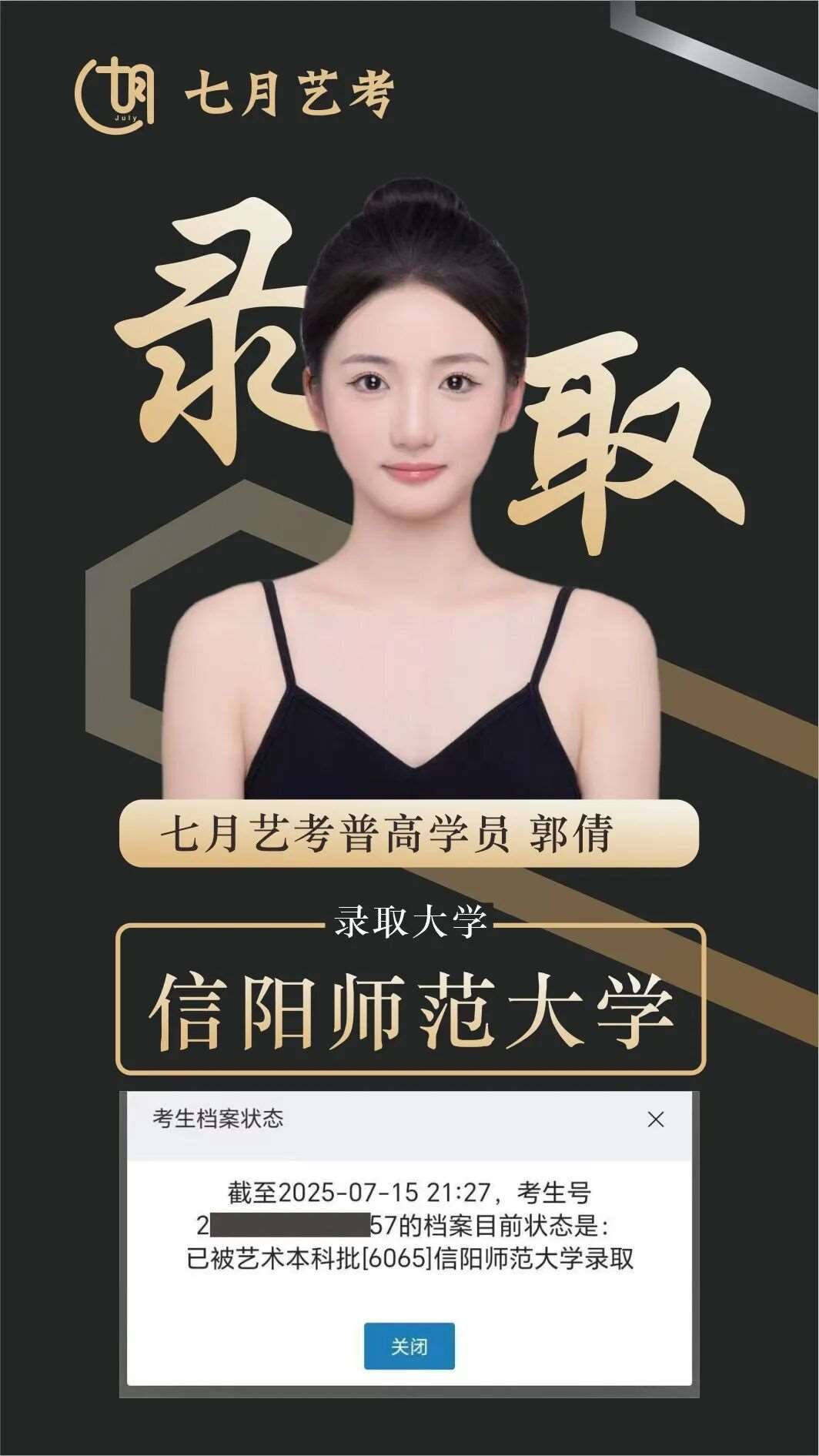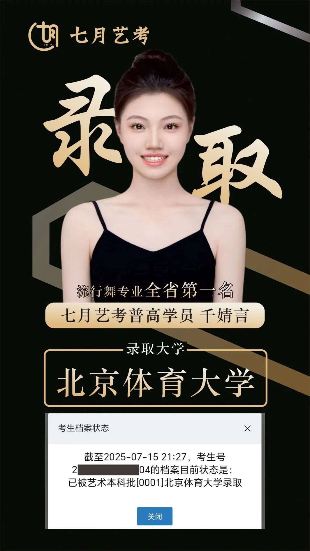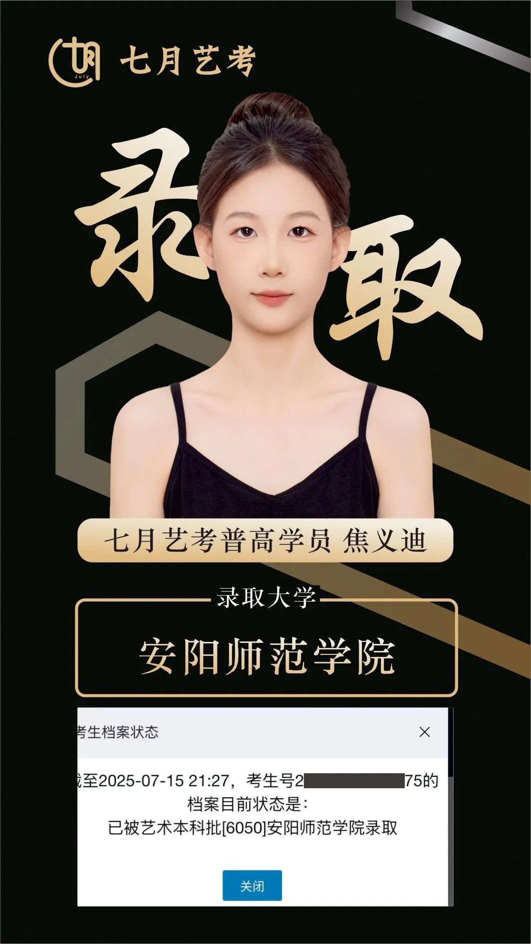 七月艺考专注于舞蹈艺术升学十六年,全国设有北京、云南、郑州三省直营校区,郑州校区连续三年保持普高生民大录取*。