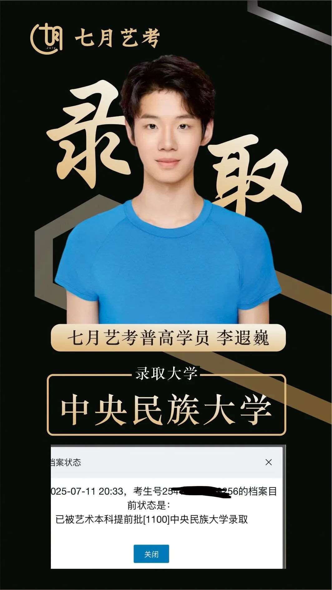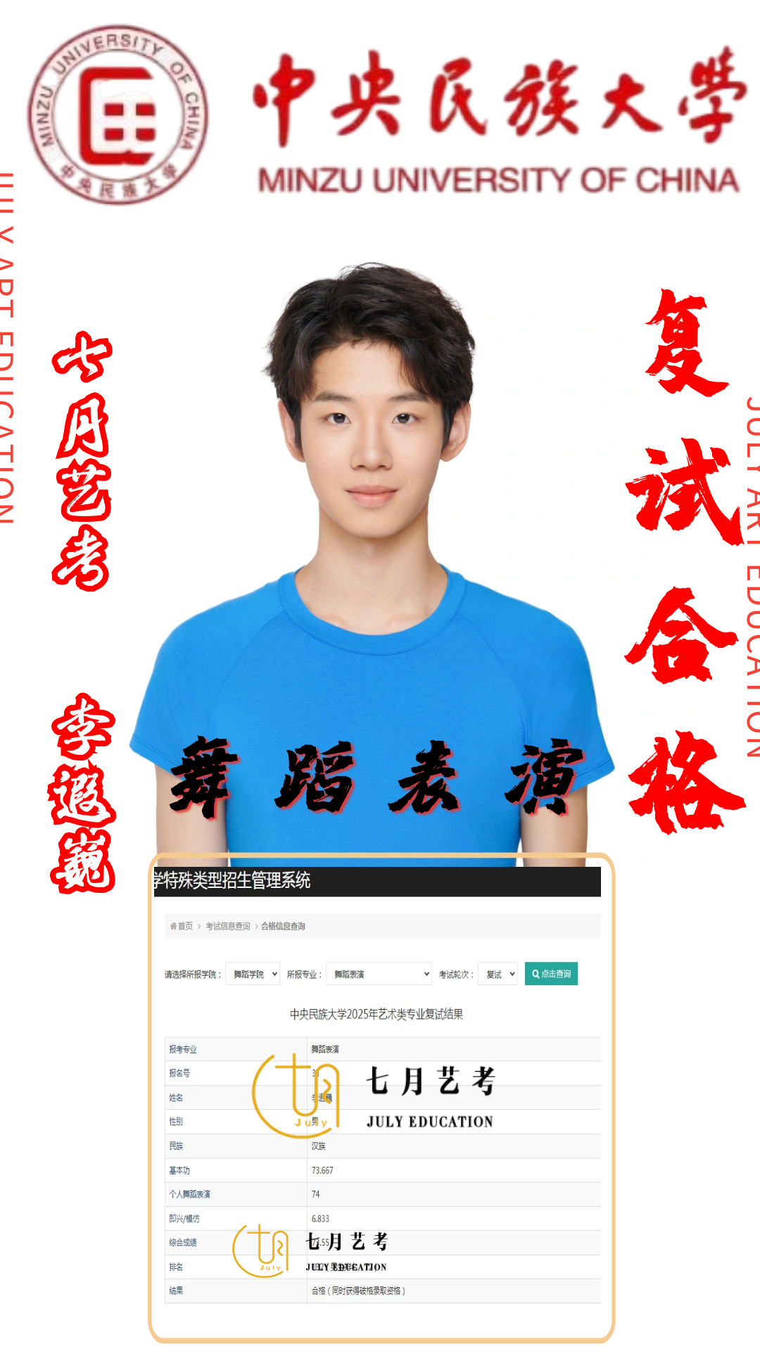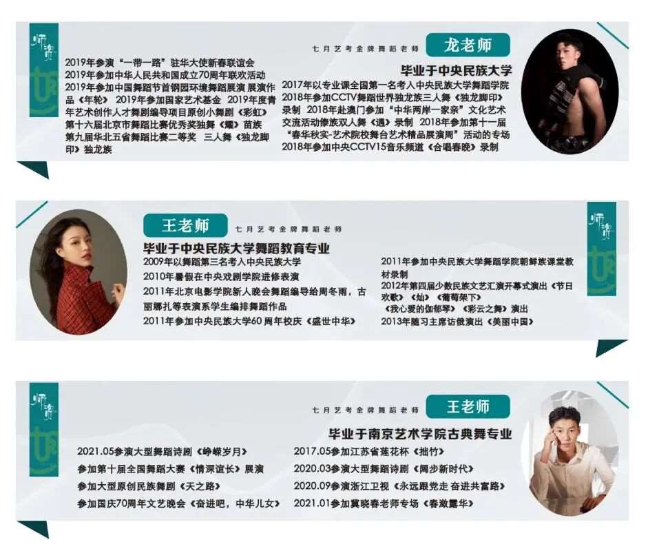 七月艺考一直秉承北舞,中央民大,军艺,上戏,南艺等艺术类高校全职师资队伍,采取专业测评面试入校,小班制教学,只做高精专艺术教育。